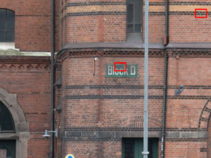 | Die verkleinerte Übersicht zeigt die Position des jeweiligen Ausschnitts in der Bildmitte und am rechten Rand. Der Test erfolgte im Oktober 2025 mit der Olympus OM-1 Mark II. |